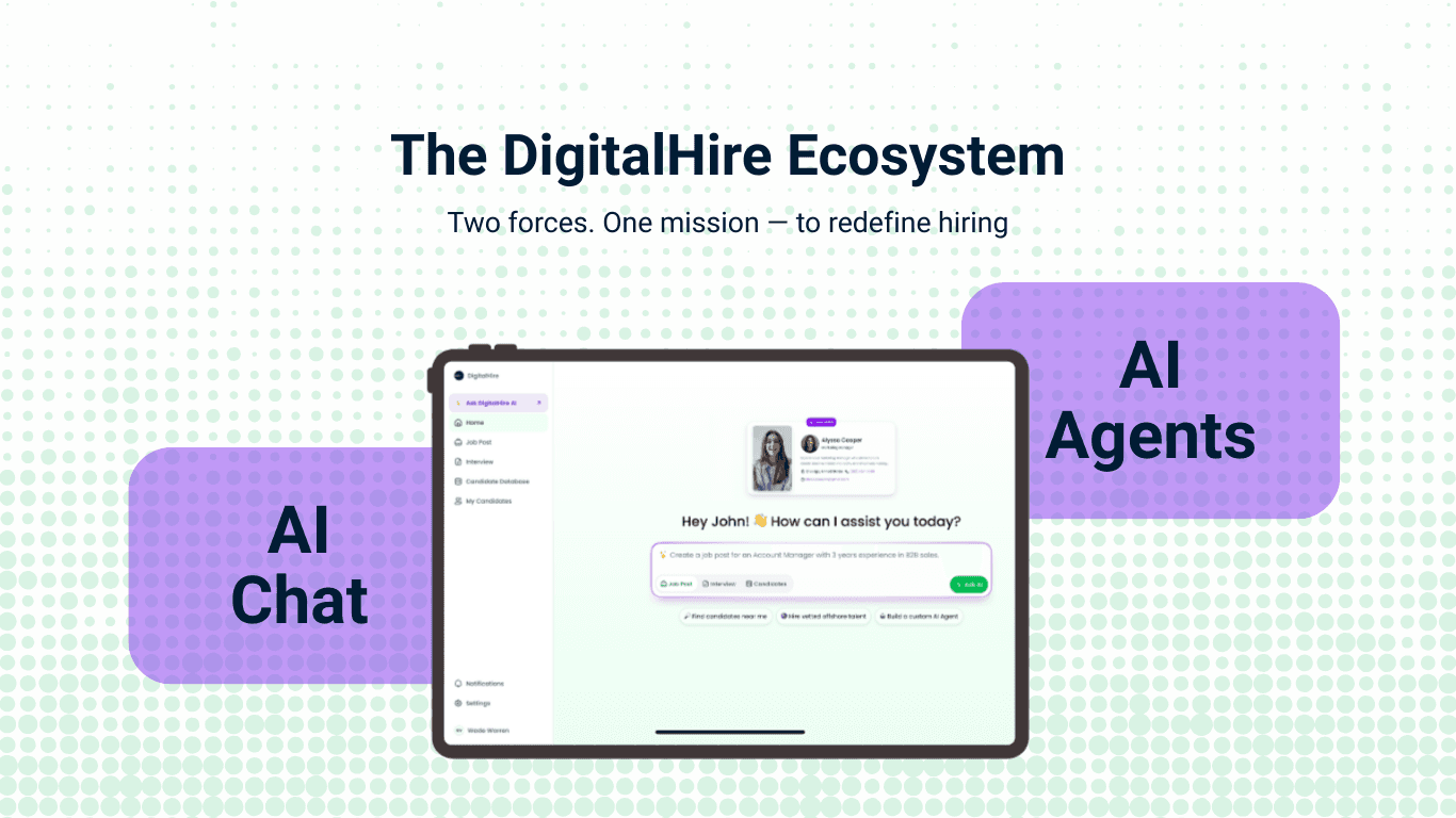A new hiring operating system is taking shape. One where conversations do not stop at words, they trigger action. One where intelligence is built into the workflow itself. That is exactly what DigitalHire delivers through the combined power of AI Chat and AI Agents.