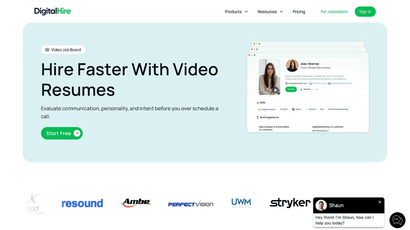 DigitalHire brings together capabilities that are often scattered across multiple platforms. Its AI-powered video job board supports video resumes and on-demand interviews, all operating within an AI workforce layer.