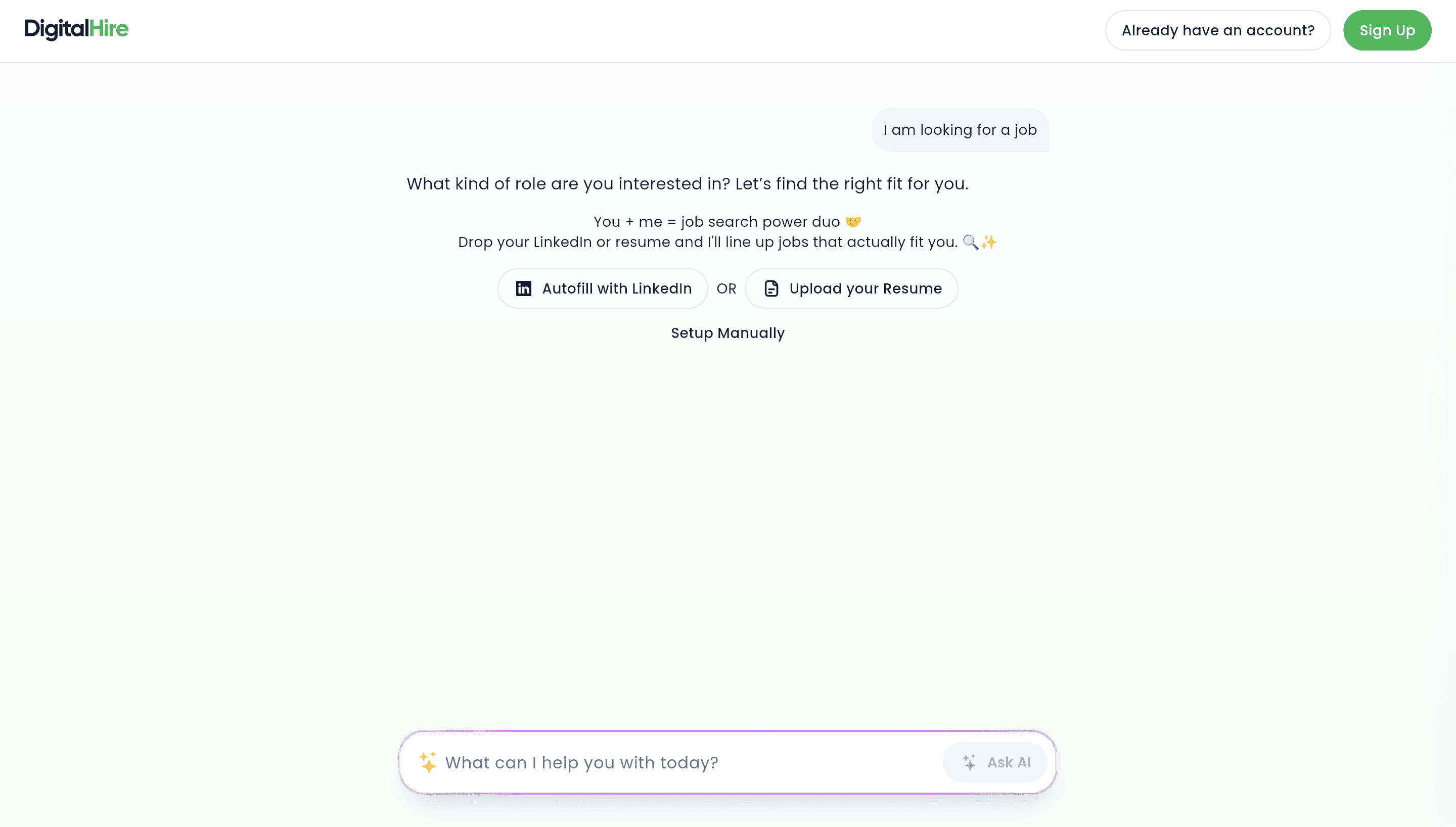 DigitalHire is built to make the experience feel less like a black box and more like a guided system; an AI-powered job search where video, matching, and structured workflows work together to keep your momentum alive.